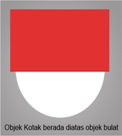 7. Di atas layer bulat tadi, buat sebuah objek kotak dengan menggunakan Rectangle Tool dengan warnaMerah (#FF0000) dan posisikan seperti gambar dibawah